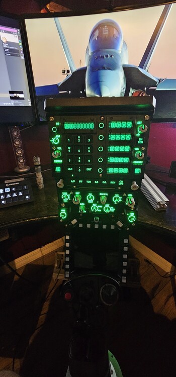 It is finally time to get back in the game… I have been a Hornet fan forever and have owned and flown probably every F/A-18 simulator ever released including Janes, Hornet Korea, and MSFS etc… but DCS has always been the favorite. In the beginning (1999) I hated flying a desk, and I really wanted some kind of “cockpit”. We were living in a rental with limited space so I wound up building the “Akers-Barnes Cockpit Mark 1” which I found plans for on the 62nd Fighting Falcons site. Served its purpose well, but less than a year later we bought a house and now I had the best thing ever… room to build bigger! At the time, the most detailed information I could find were CAD files for a Hornet cockpit, but I can’t remember where they came from… Hornetpits.org maybe? Anyway, I finally got started on my pit in 2001 and got to a point where the cockpit shell was complete and painted, Suncom SFS Talon stick and throttle (which I still have somewhere) installed, and the old 17” CRT Monitor up front. The original plan back then was three monitors with Fresnel lenses to give a false big screen view, three Thrustmaster Cougar MFDs (with a DIY LCD retrofit), and I even bought a first surface mirror and started working on a live HUD. As far as the panels were to go, I installed Dzus rails along the length of the left and right consoled to make installing and maintaining the panels easier. At the time there were a handful of places on the internet that I could find prefab panels but the thought of wiring, programming, and the software interface seemed a little daunting so I was content with making blank aluminum panels and gluing printouts of the panels on them. Spent quite a bit of time in that rig but before I could devote time to all that work… life, work, and lack of funds took over. I started flying again a few years ago, upgraded from my Thrustmaster Cougar to the Warthog (never was a big F-16 guy) and I decided I was going to buy a 3D printer and start making pit parts. Fast forward to today and becoming aware of Open Hornet, A Hornet's Nest, the Warthog Project and many others… and the ability to source parts way easier than ever, it’s time for pit “resurrection”! The final goal is as much fidelity as I can afford, DIY 270 deg screen with a three-projector set up (nod to the WH project) and if all goes well a functioning HUD. I’ll post progress for those that care to see and welcome comments and suggestions. As time goes on, I am sure you all will be a tremendous help when I start interfacing with DCS. Actually, you already have been, and I can’t thank you enough for your dedication to the flight sim community! And here we go… Cheers! Ed