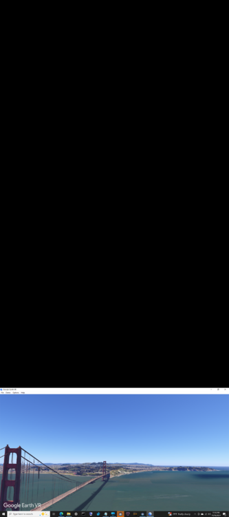 OK, this should be really simple, I installed Google Earth VR, It launces and runs just fine save for my very slow internet, Everthing works and the graphics defy desription. SO, I start DCS, press the launch DCS button, it does launch as viewed on my monitor but in SteamVR all I have is an empty grid floor display, the mirroing is separated. Acts like DCS is not taking over my VR view in the goggles. I just shut down SteamVR at my desktop, attached is the log file and a couple screenshots of Google Earth VR. dcs.log Hey, if you never tried Google Earth VR, you should, it is mind boggling awesome.