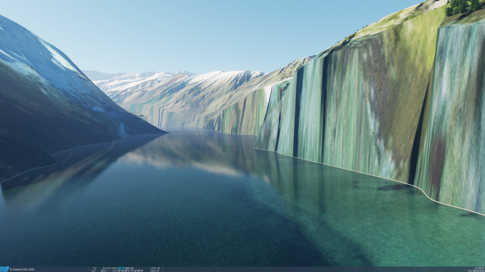 This may be part of the upcoming North Afghanistan map, however I want to report this anyway as it also affects the East Afghanistan map. In the current DCS release 2.9.13.6818, sector XE in the northeastern part of the Afghanistan terrain exhibits low resolution, checkerboard-like surface textures throughout a substantial part of the mountain area (you may have to zoom the screenshots to 100% to view the issue): On the mission editor map, the difference in texture resolution can easily be viewed by switching to satellite imagery and zooming in until the map scale indicator shows 600 m or below. Furthermore, creeks rendered as water on mountainsides can become unnaturally "shiny" under certain lighting conditions - even when in the shadow of the mountain - as their surface reflects the sky colors. This may affect all creeks on mountainsides throughout the map: Also, as already has been reported by others, there seem to be base mesh / altitude issues with rivers throughout sector XE and possibly adjacent sectors. Apart from the above, the ambience and feel of the terrain is awesome and a joy to fly in. Keeping my fingers crossed that you will bring the quality of the entire mountain area east and northeast of Kabul and Jalalabad right up to the Chinese border up to par, as this area offers spectacular high-altitude mountain terrain truly unique among the available DCS maps. Thank you for keeping up the great work!