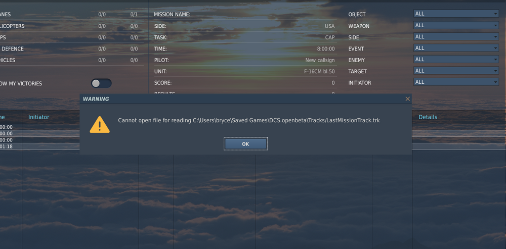 save track is still there. I hit it again and same error. wont let me save. Also wont let me watch the replay. I also open the directory it mentioning and dont see a file called lastmissiontrack.trk