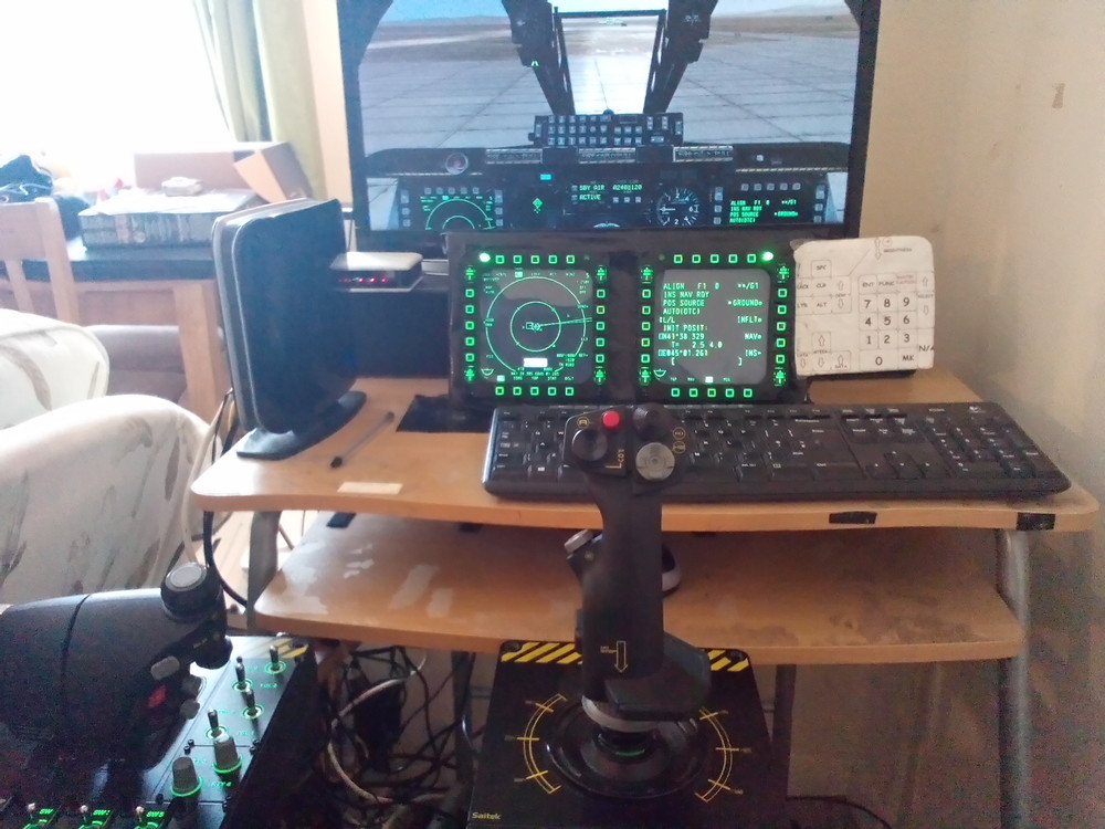 Yep you got it. cut a hole in the top of the desk and it sits on the keyboard draw... my knees are free (couldn't operate the rudder peddles otherwise) :thumbup: -