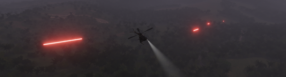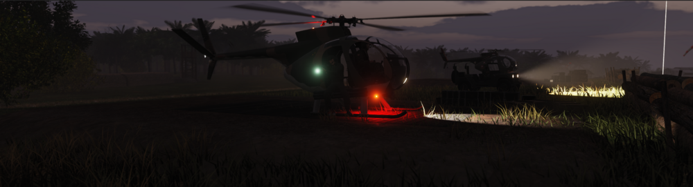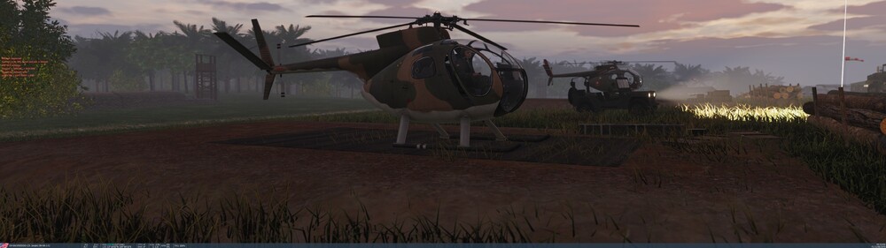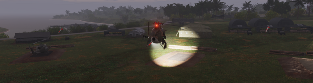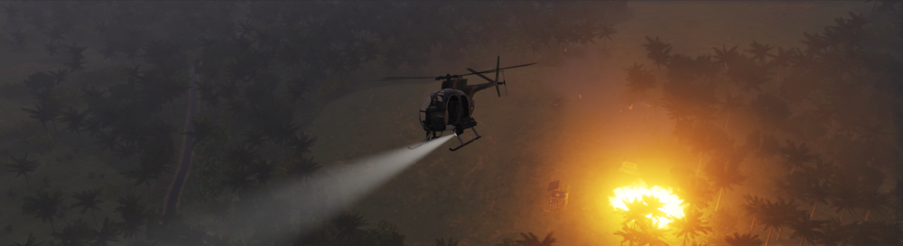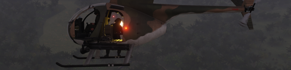 The ITJ experience on the MP server is a bit spicier than you're gonna be used to in SP. I modified the level of intensity to better replicate the <profanity> storm most of these guys were flying into. Additionally, I've begun to implement random friendly air traffic and will soon have the occasional Mig-21 sweep through looking for targets. Are usual multiple weather variations have been created and will be in rotation. From Clear winds calm and Dawn, to full blown Typhoon. Here is some OH-6 eye candy from the MP ITJ experience. -