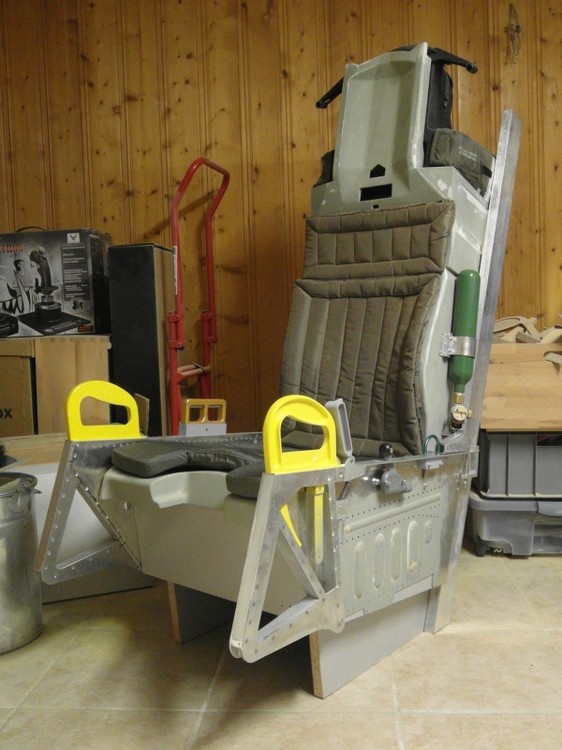 It's been quite some time so I guess it's time for an update: As you can see I'm still working on my Aces II. No big changes but quite a lot of additional details: The manual emergency chute handle for example - looks easy to do but it consists of 4 parts all done from several layers of plywood (I want a milling machine!!). The arming lever is also done from plywood while the harness lock is an original part: The oxygen bottle bracket is almost done but still needs to be fixed to the side of the seat bucket: -DSP