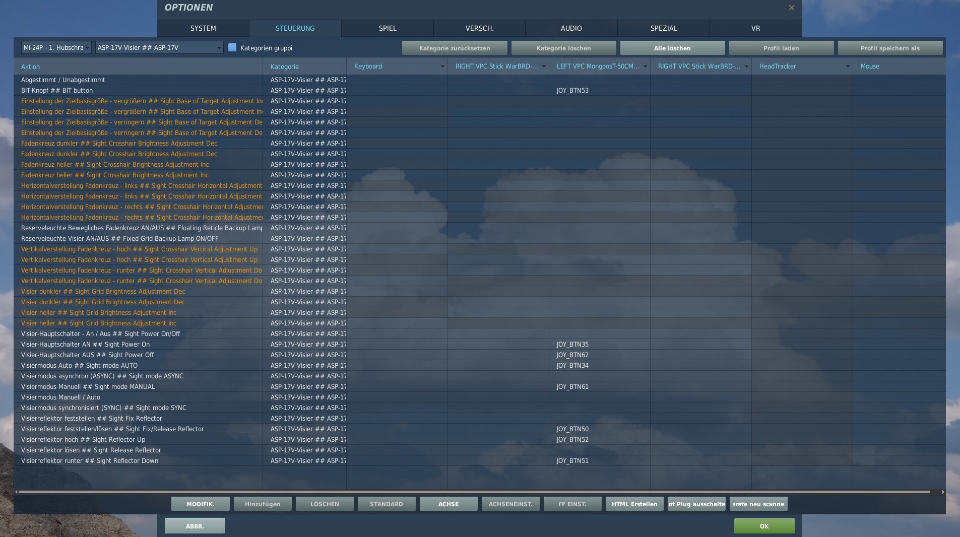 1. Hello, after I updated my DCS, I have a problem with the bindings for the ASP-17. There some functions twice. Now I can't bind any key to that doubles any more. Does anyone have that bug too?