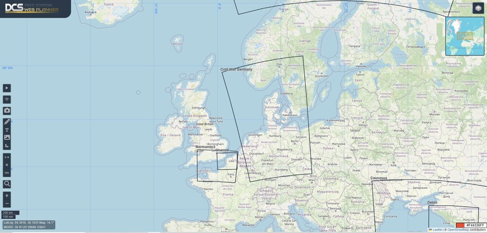The actual DCS Maps cover. A 3rd party will build a propper GUIK Map zone to cover England / Ireland / etc. GUIK has a propper combat zone. ED has working on the "World Map". (15:25).