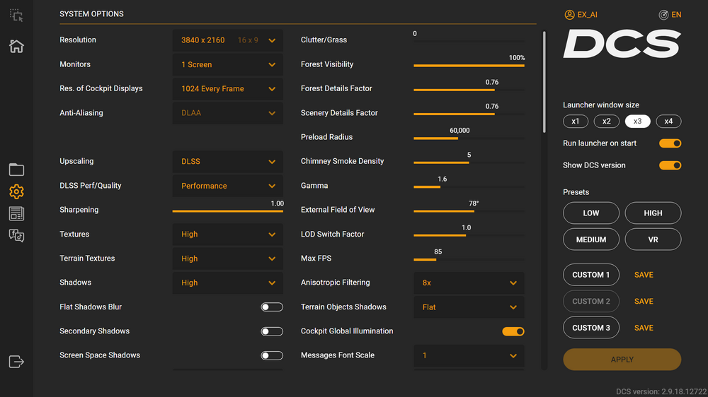 But, the current issue is that there seems to be "negative impact" everywhere: My CPU is 14600KF, and it can stably run at 80 frames per second in the AH64D - Persian Gulf cold start mission without QVFR enabled; but once QVFR is turned on, the frame rate drops to 57 - 60 frames per second right from the start of the mission. And,I haven't tested the frame rate with DLSS turned off, but isn't DLSS supposed to bring significant performance improvements? So why not keep it on....? -