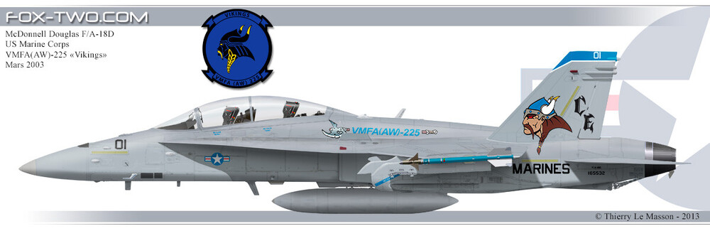 Hello, I was hoping that I could add a squadron to the wish list of USMC skins? The squadron in question is VMFA(AW)-225 the Vikings. they have had some pretty cool looking liveries especially their second to last one before their sundown to F-35s. I have attached pictures for reference. The 3 tone black, blue, and grey was their second to last show bird, and the pictures with the Viking head colored is their show bird from years ago Id say late 90s early 2000s, and the all grey with a blue line on the vertical stab is their standard squadron scheme with the ACE and death dealer skeleton in the middle. They did have a mix of C models in their squadron at one point. I attempted to make the scheme but failed miserably I would love to see it in action in the game.
