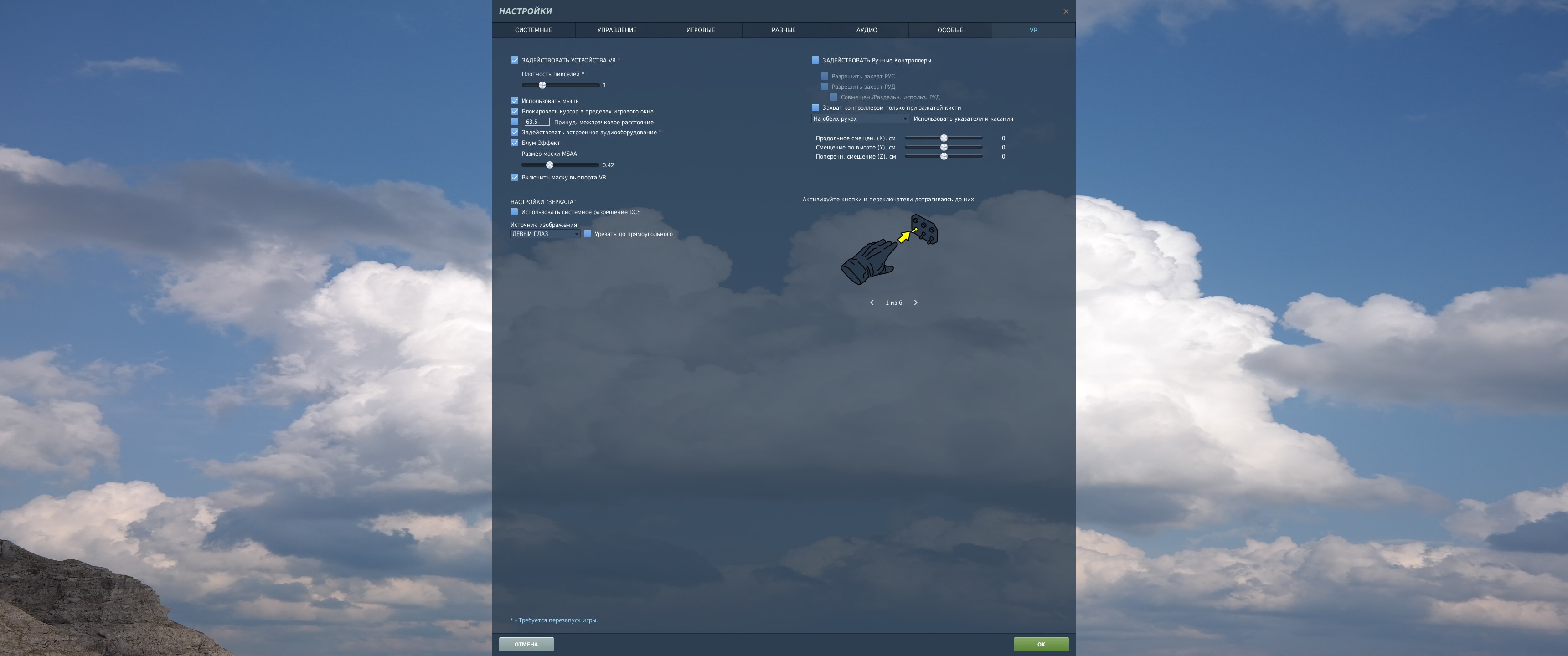 Поставил галочку в режиме VR. Перезагрузил игру.