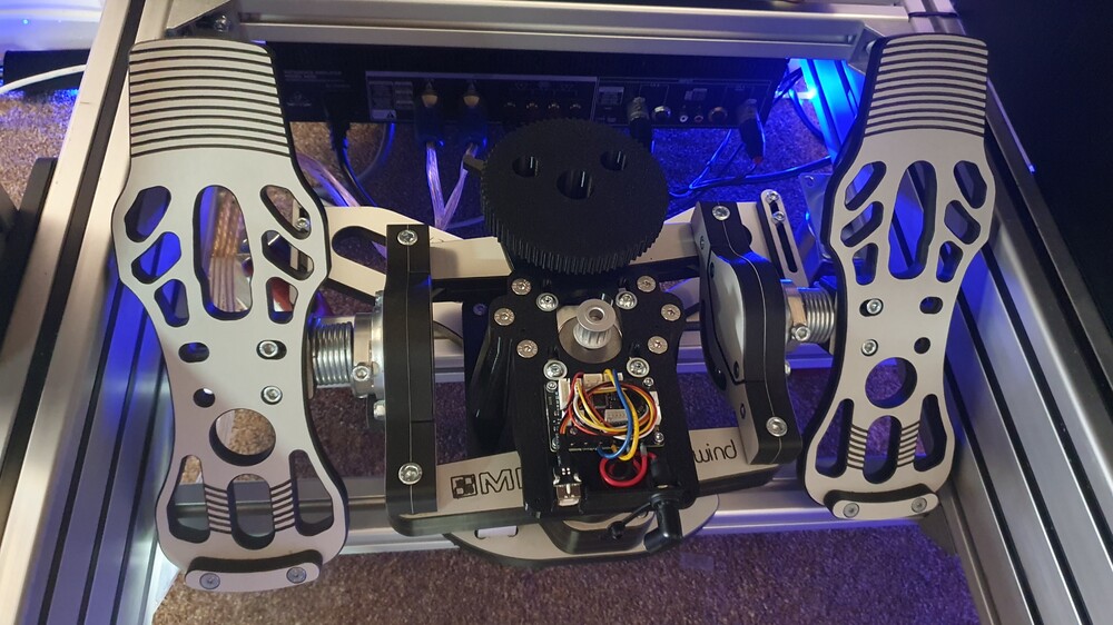I ordered and received a Rhino MFG crosswind FFB kit from Kaltokri, very speedy dispatch, the motor came with my Rhino stick, easy enough to follow the clear instructions, the motor needs some work on the wire end to insert into the motor board, just stripping a bit and I tinned the bare wire or you could just insert the bare wires as you would an electric plug, if you are old enough to remember doing that. I was a bit confused with the X axis in the software but turns out I had a Y axis motor, its labelled, so a case of swapping the axis in the software to see it as an X axis. The print finish is excellent and very tidy, all tolerances make for a perfect fit, very enjoyable build, the hardest part for me was mounting to my rig, 20mm M6 bolts are just long enough to bolt it all to a T6 slot nut on the 8020 profile. Now to just get around to sorting profiles out. -