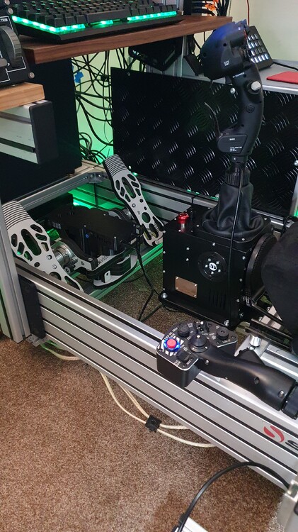 I am transferring from racing to just flight simming, 8020 rig, so I just need to rejuggle stuff around plus add wheels so I can move the rig in a corner. So far its working out as minimal swapping for GA, Airbus, GA rotary and of course DCS, will know by the end of the week if I have achieved that.