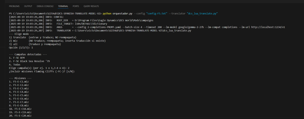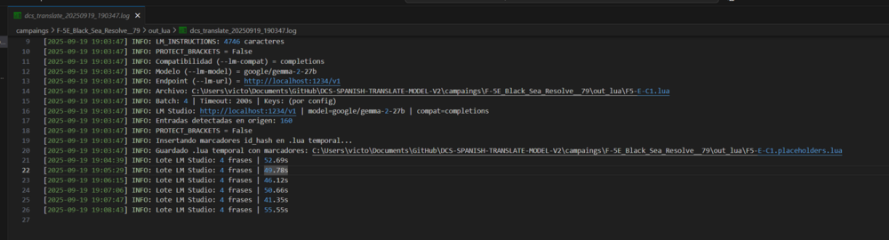 Vuelvo a publicar el script, en cuanto pueda haré unos videos de como se usa, si alguien se anima y me da feedback se lo agradezco, así puedo ir puliendo los fallos. https://github.com/VictorGil-Ops/DCS-SPANISH-TRANSLATE-MODEL-V2 slds. -