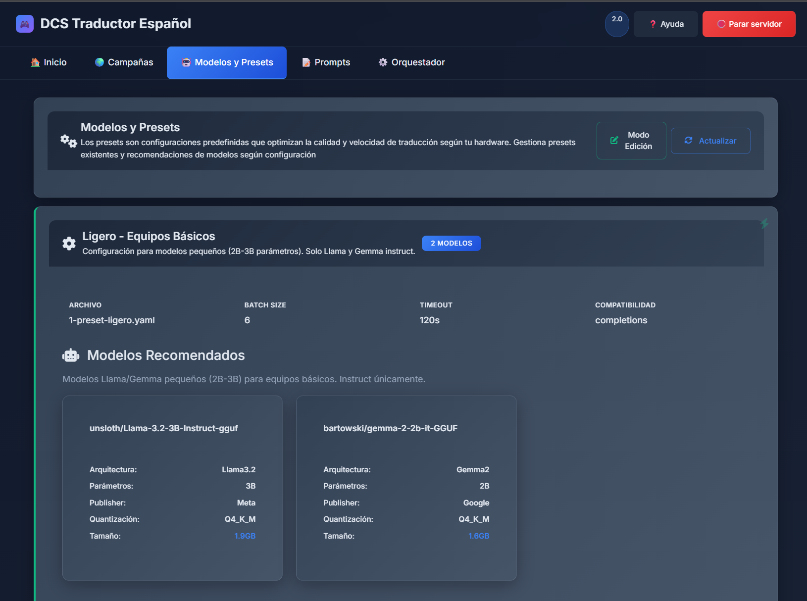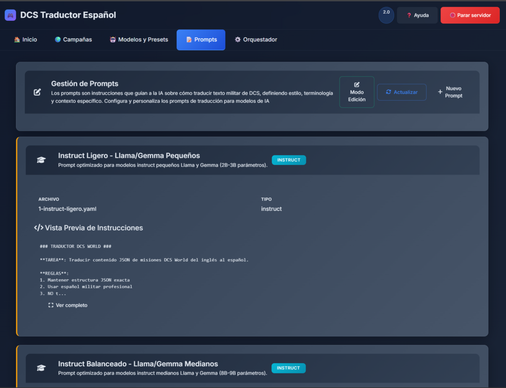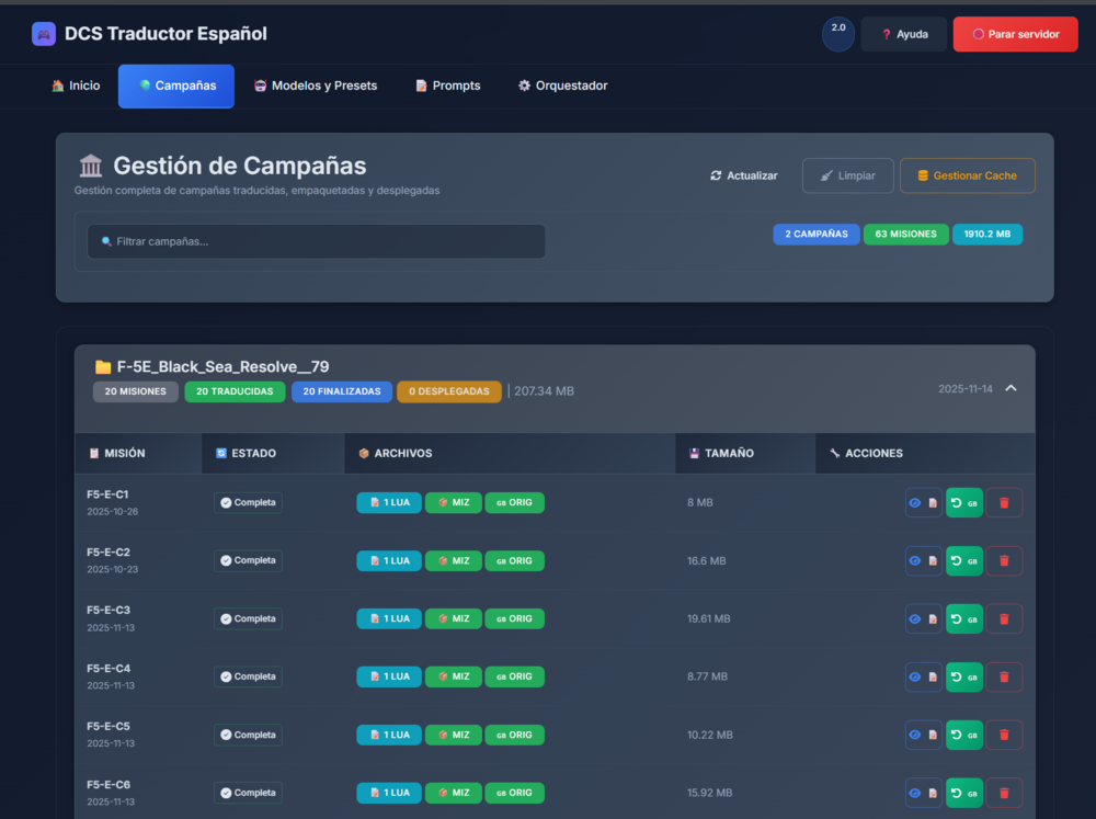 Buenas tardes, publico un herramienta para realizar traducciones, para mas información leer la documentación, esto es una versión actualizada de una heramienta ya publicada: https://github.com/VictorGil-Ops/DCS-SPANISH-TRANSLATE-MODEL-V2 Responderé a las dudas que se pongan en este hilo pero estaré atento a los problemas abiertos en el propio repo: https://github.com/VictorGil-Ops/DCS-SPANISH-TRANSLATE-MODEL-V2/issues Dejo algunas imágenes: -
