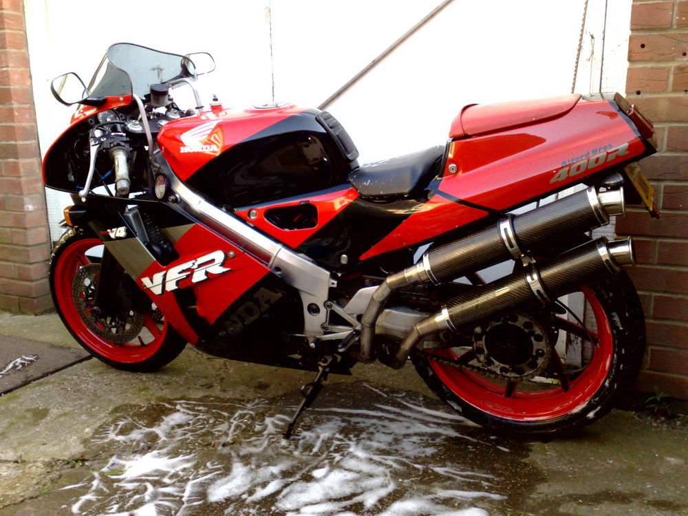 Great idea starting this thread and its great to see other people's photos and stories! I've recently taken to riding my Honda Firestorm again due to my car's engine dying last week. It makes getting to work so much quicker and so much more fun when compared to my dead 1.2l Vauxhall Corsa, but it does like to drink a lot of petrol! :D I've also attached a pic of my Honda VFR400 which was my first bike and I still own today. It currently needs a little cosmetic work but I still love it all the same :thumbup: