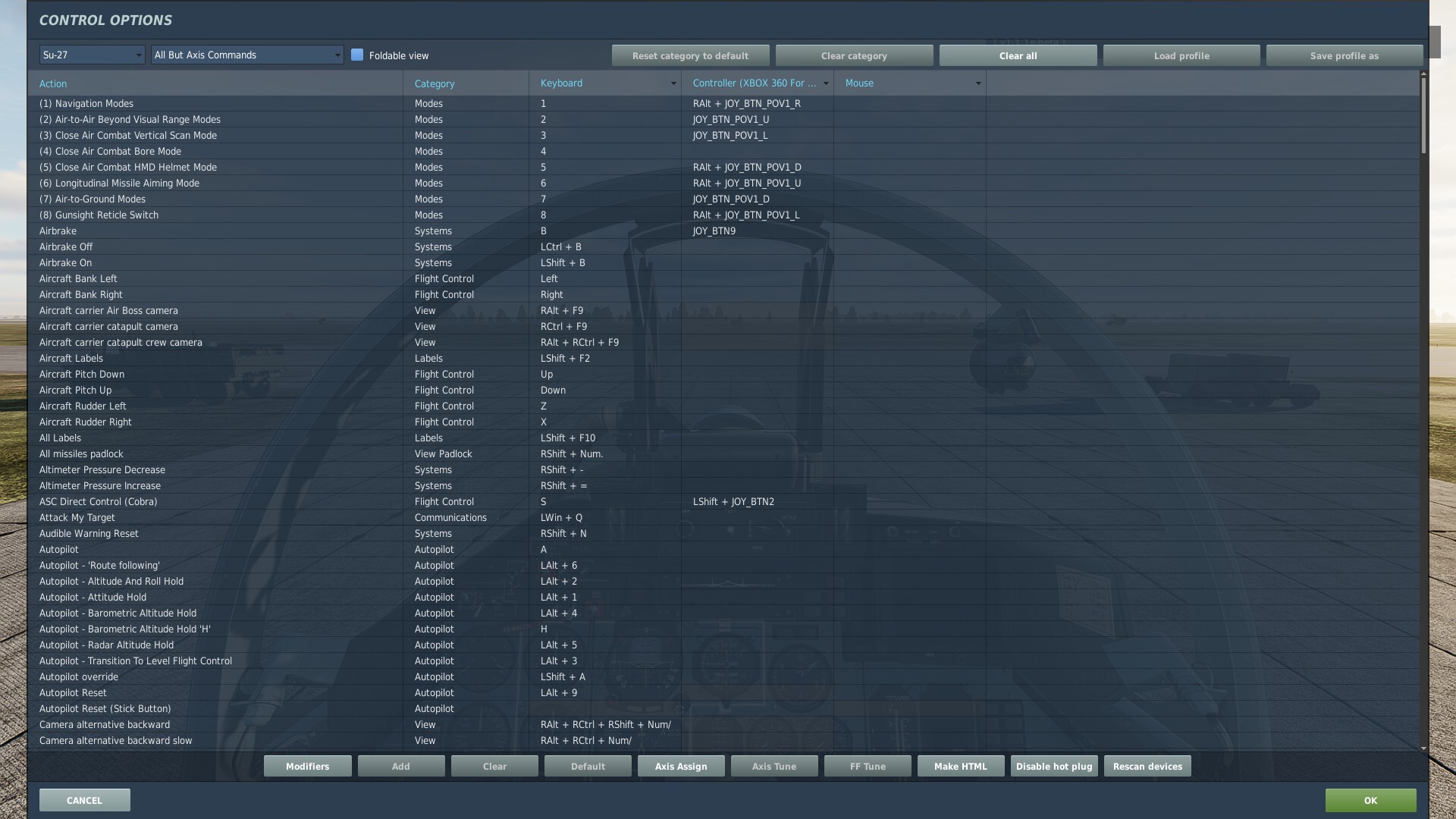 I'm using a DualSense controller, but it doesn't recognize some commands in the edit tab of the F-15C fighter's control settings. Could anyone tell me if the company really didn't make these settings available for the F-15C fighter, or if there's something wrong with my game?! "Note: I've done everything possible to try to solve this problem, but it was no use. So I decided to come and clear up the doubt here. I sent two screenshots, one of which contains the F-15C and its settings, some of which cannot be edited, and the other of the Su-27, which is completely the way I want it." If anyone can answer me, thank you very much!