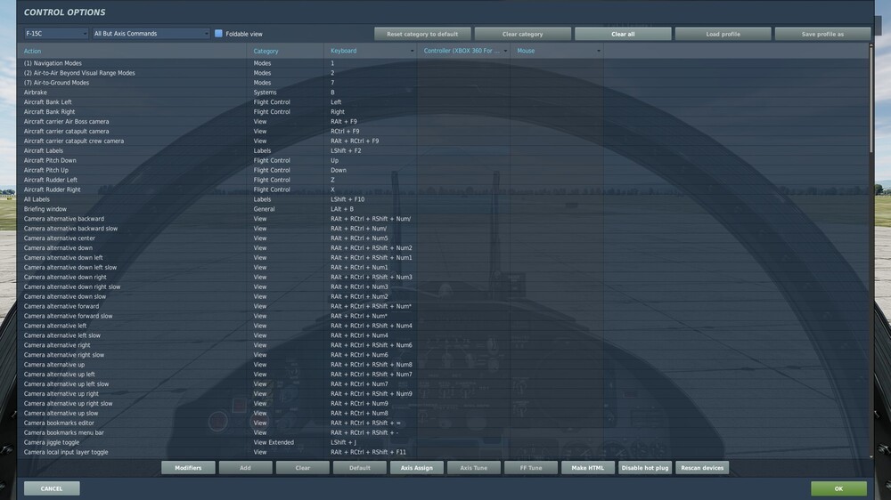 I'm using a DualSense controller, but it doesn't recognize some commands in the edit tab of the F-15C fighter's control settings. Could anyone tell me if the company really didn't make these settings available for the F-15C fighter, or if there's something wrong with my game?! "Note: I've done everything possible to try to solve this problem, but it was no use. So I decided to come and clear up the doubt here. I sent two screenshots, one of which contains the F-15C and its settings, some of which cannot be edited, and the other of the Su-27, which is completely the way I want it." If anyone can answer me, thank you very much!