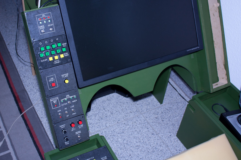 Vielleicht bringe ich über den Konsolen noch ein paar kleine Lampen an, für Nachtmissionen. Ein Sitzbezug soll noch her für den Gelben Schaumstoff und wie gesagt, eine schnellere Grafikkarte tut dringend Not!! Spenden nehme ich übrigens gern entgegen ;-) Ist schließlich für einen guten Zweck ;-))