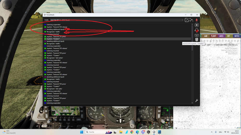 Thx for your input! Yeah, I've got that set up correctly. I've got it working, but still, voice recognition is not working too great. But I guess, I can get used to it. One more thing though: the blue font on the kneeboard for the things that got read back (from JTAC, ATC, etc.) is too big. I can only read one half of it. Why is that?