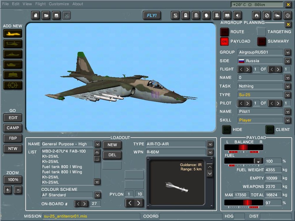 By midFeb2001 a total of 76 stories had been completed for a total of more than 63 flight hour,S-8 rockets were the most used ammunition with a total 929 rockets being fired,some 1500 round of 30mm ammunition and 3 VIKHR missiles(there weren't that many targets worth a VIKHR).