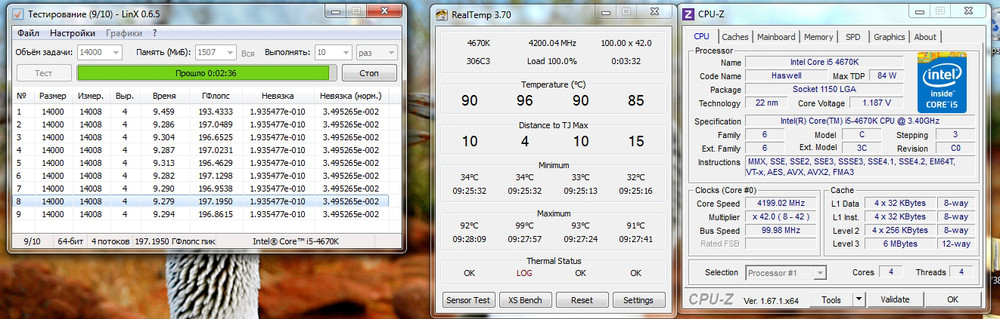 Haughty Catt, 4500МГц, i5-4670K, Vcore=1.25V, VRIN=1.9V, ЖМ под HS, VID 0.997V, Ice Hammer 4700, мат. плата ASRock Fatal1ty Z87 Pro, Win8.1 Pro x64, LinX 0.6.5 64bit