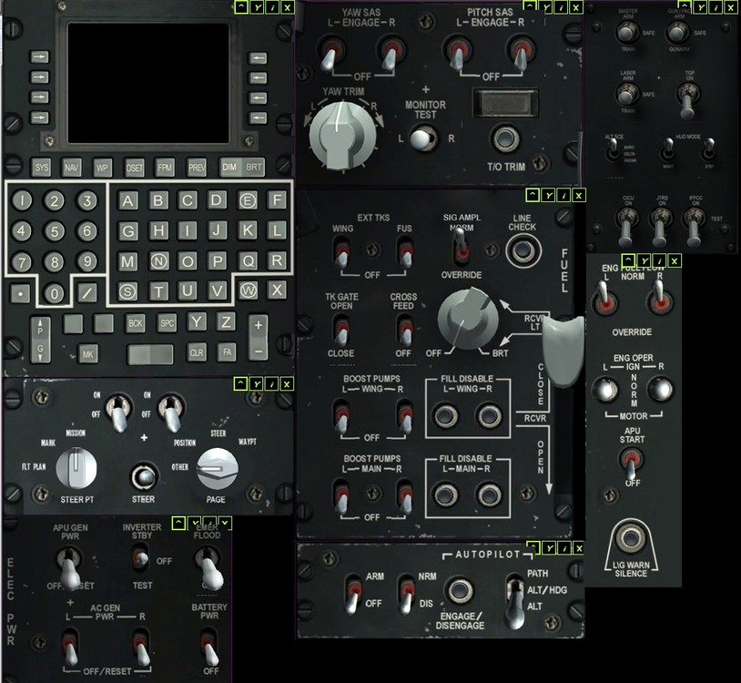 I tried that, <DataImportID>CP_EAC</DataImportID> however had no effect. Also the light on the caution panel is flashing when eac gets disarmed so propably not the best data source for the switch. In general the option to get switch positions from DCS would be nice, if thats possible. Now switches get out of sync when you do something directly in the cockpit. I have created the LASTE panel and also the electric panel: They should be working, besides the three way switches of course. I also corrected the graphics errors (yellow tool tips) in the cdu. All three panels are attached to this post. -