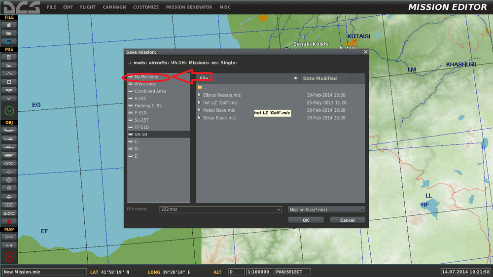 Я разобрался. Всем спасибо. Оказывается, сохраняться можно только в папке My Missions (указал стрелочкой). В других папках, а также на диске С отказывается сохранять. Но все работает. Да, действительно давно не запускал ДЦС. Может раньше было и по другому, честно, не помню. :thumbup: