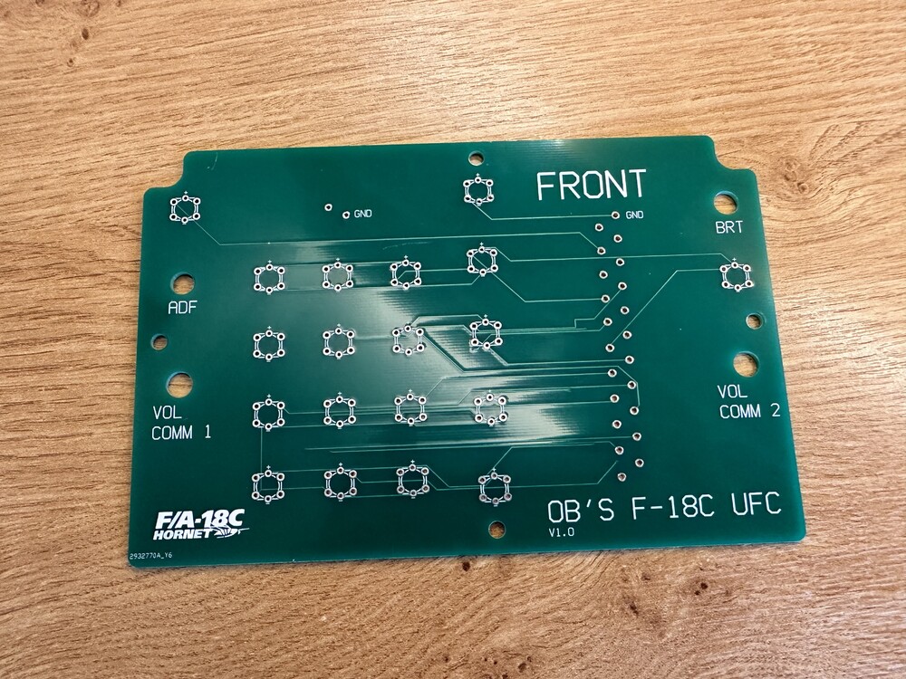 For those still following this thread/project, I thought I'd turn my attention to putting together a custom PCB after spending the last few weeks learning how to design them for my F-18 build. I'm yet to send them for manufacturing as I have a few things still left to tidy up but I'm getting pretty close. I've designed these to fit within the UFC housing that I've made available right at the top of this thread and will expect the PCBs alone to cost around £20-£30 in case anyone is thinking of buying any (low volume manufacturing means I'll have a fair few spare ). I'll also be producing a LED-less version that uses purely 6x6mm tactile switches to save on the complexity of soldering and overall cost. Note that both version won't have space/be designed for any segmented displays (I primarily fly in VR). Edit: In case anyone is wondering, these are designed to be plugged directly into a Leo Bodnar USB interface board (or equivalent breakout board) and will share a common ground connection