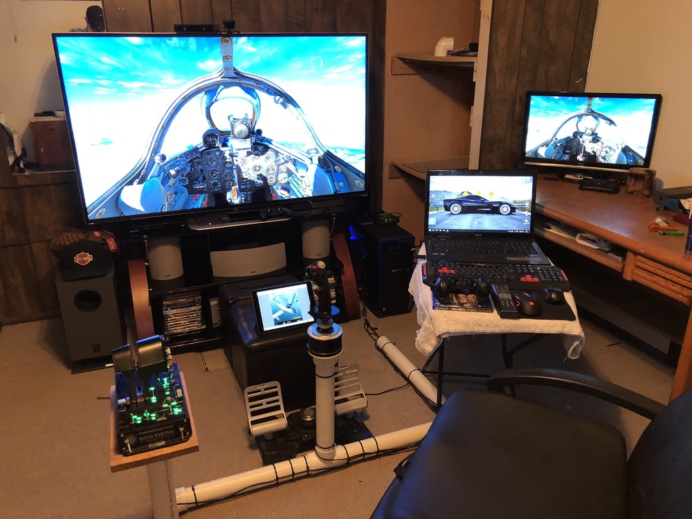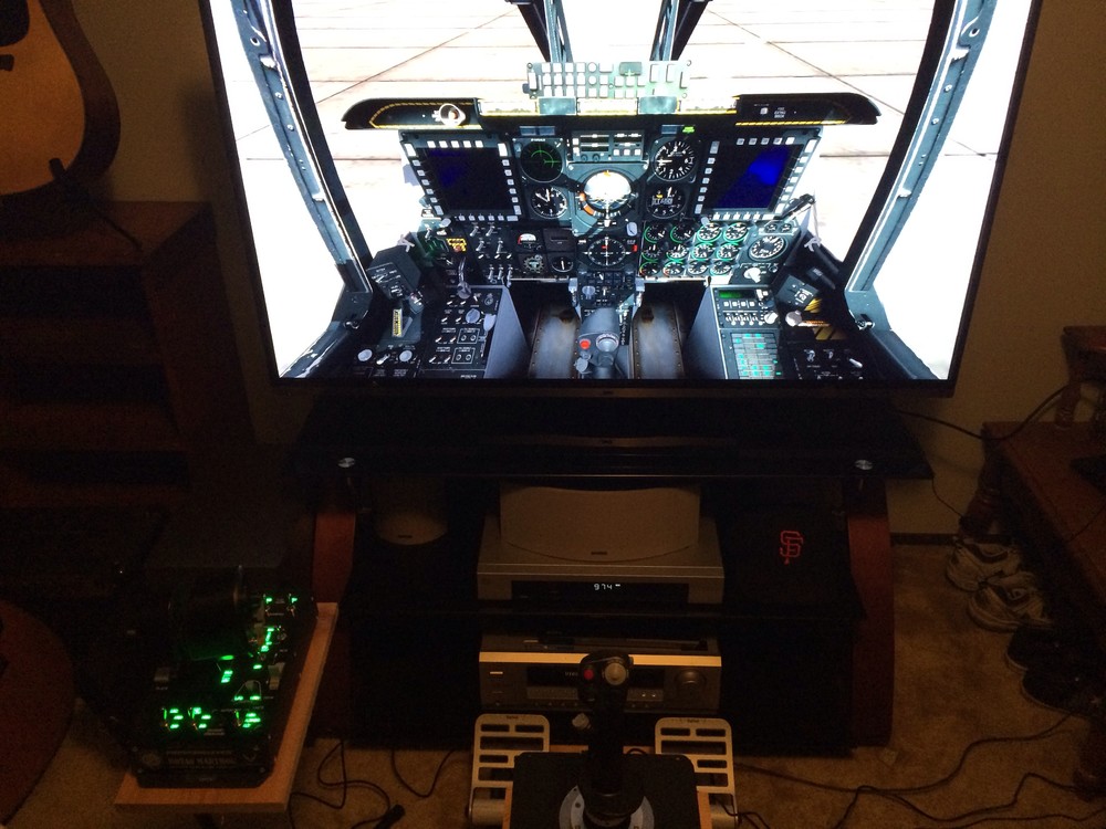 After being totally out of the flight sim community for almost two years. I'm very happy to be back. Life can be quite involved at times and I was no exception. Divorce and reestablishing ones self is not a overnight feat. I've come around though and glad to be on with flight simming again. As many may know I'm a truck driver. I do west to east coast runs and home again and I'm off 4 to 5 days at a pop after being out 2 weeks. I was in Florida when I ordered the warthog and it arrived before I got back home. It took me two days to set up office and it came out nice. Of course I had days on the road to think about how to setup. My initial impression is good. Throttle is nice and smooth....love starting up ..setting the throttle...way cool. I was using an x-52 Saitek before and the precision to the warthog is worlds apart. Setting down in the green of the AOA indicator is a breeze. I'm sure it will be much easier in refueling. I'm just going through my targeting stuff now. I have forgotten so much and learning of the button assignments will take some exercise ....but much easier. I also ordered the saitek pro rudders and I love having a rudder system now. I was using the twist stick on the saitek. I also added a 55 inch screen.... If my ex wife saw this setup .....she would be so pissed! Thank god I don't have to worry about that any longer!