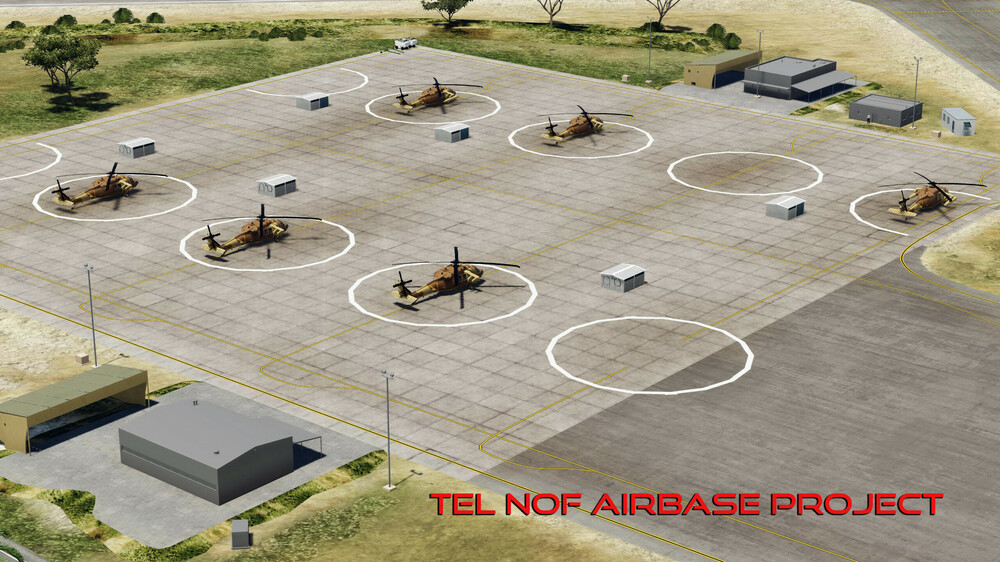 Thx @flybull@Raisuli. My idea would be to enhance all airfields, it's a long shot and a lot of trial and error, and only with the help of OnReTech and ED this could become the first map with a much more realistic detail regarding airfields. I sayed it once i'll say it again, removing stuff that is not there in real life and adding stuff that is there. Most annonying right now for me is the small stuff (grass,stones, bushes) it makes my work much much more difficult, It would be a tremendous amount of help if ED @SkateZilla can add this small feature to the Scenery remove Object zone (Trigger Zone -> Remove small stuff, grass, stones, bushes..) I've allready requested this feature in the ME wish list ! Back to topic, i keep on working on the northern part of Tel-Nof.. the cars are from different mods. Sure it would've been easier if @OnReTechwould have added the road and parking lot allready.. but anyway. All WORK IN PROGRESS Proof that it's possible @OnReTech