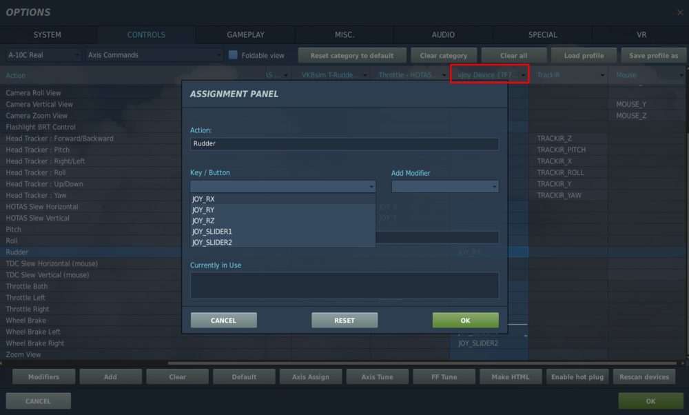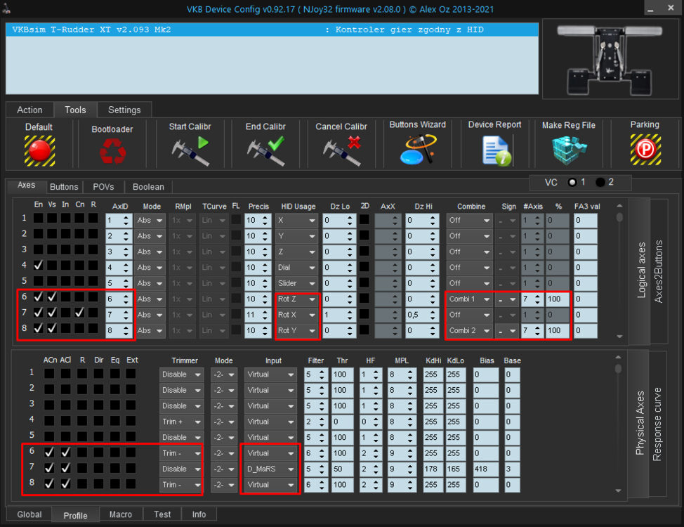 I appreciate your kind words. Thank you. I'm using this setup since couple of weeks and it definitely enhances T-Rudder's potential. For people using joysticks with a twist axis it's also possible to split the twist axis into two virtual axes in the same way. It can also be done via VKBDevCfg (provided that we don't need to bind the regular twist axis too since it will also generate input).