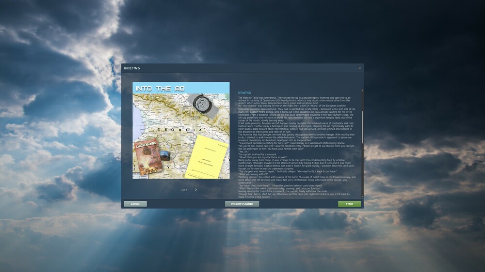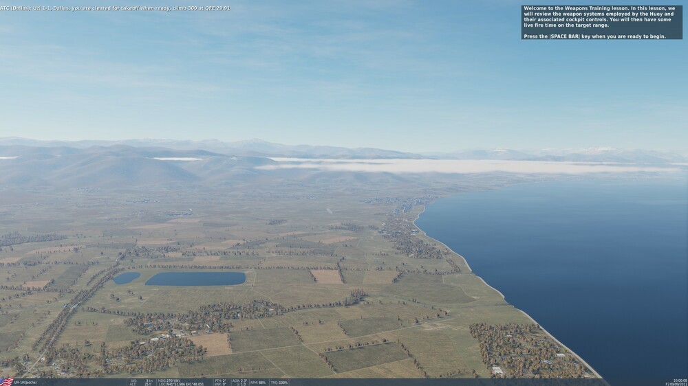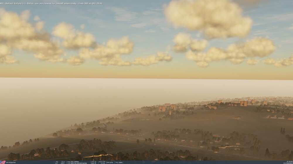 It would be nice if someone could check and adjust weather (clouds) settings for UH-1H training lessons. This is training landing solo practice (clouds on ground level, airfield with zero visibility): Weapon practice training (strange flat clouds): Also some of the Caucasus instant action missions have weird cloud settings: Free flight (again clouds on ground level): Target practice (like above): Oil rig landing: This is a minor issue, yet these missions acts as a showcase for the module and it's a pity that currently they look like that considering how visually stunning DCS can be with the new clouds system.