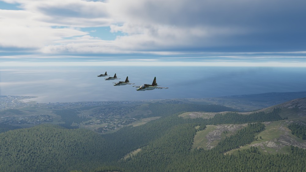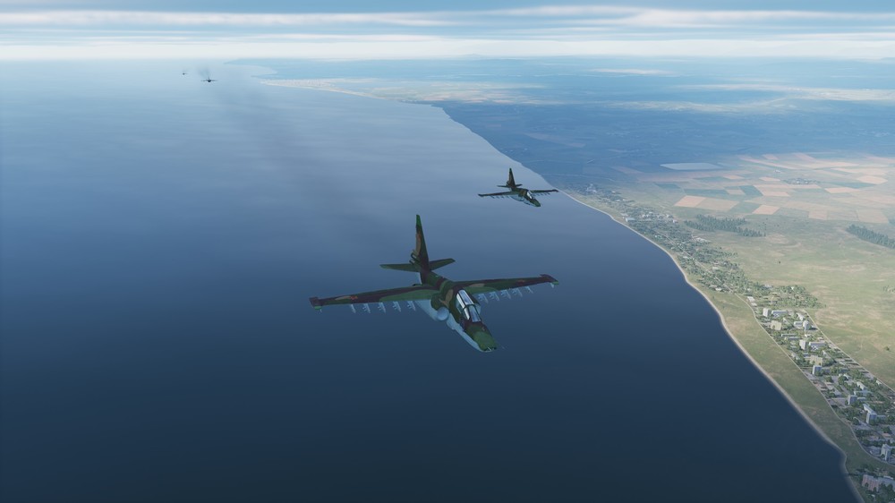 When flying in formation smoke trails are not visible for wingmen in case of Su-25 and Su-25T. They can be seen when they are trying to join up and when they leave formation (attack target, RTB, etc.). Su-25 - 3 and 4 still joining formation: Su-25 when flying in formation. Trails disappear: Same with Su-25T. 3 and 4 still joining: Su-25T in formation: In case of MiG-29A this problem doesn't exist: