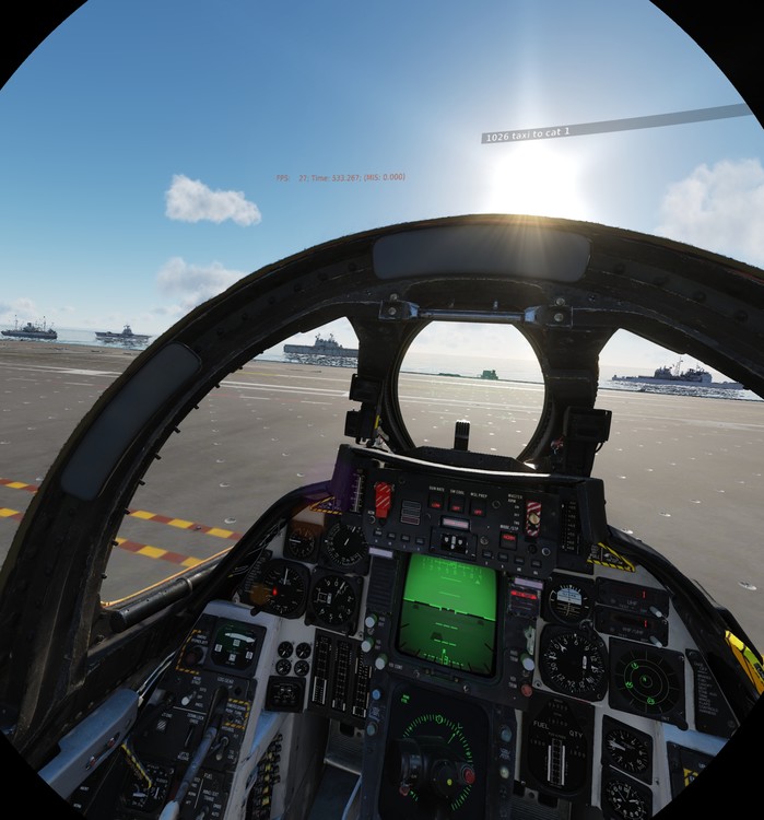 It fixed "by itself" for me after the patch and the changed mod pack. I don't use anymore the mod from the link on that youtube, I use the one in the first post here (the most updated) and I had replaced the water.fx file from mod with the original modified on those 3 lines to repair the transparency of water in shallow waters. If you are searching for a IC compatible pack you may try to remove the offending files from this mod and disable not necesary functions from the config file inside the mod _HMD.hsl I use the following settings: // optimisations: change 1 to 0 to disable #define ENABLE_HMD_MASK 1 // Enable hidden area masking for HMD (adjust MASKSIZE to fit your headset) #define ENABLE_SIMPLE_SHADOWS 0 // Use less samples in shadow mapping #define ENABLE_SIMPLE_GRASS 0 // Simplified grass #define ENABLE_SIMPLE_CANOPY 1 // Simplified canopy glass #define ENABLE_SIMPLE_HG 1 // Simplified histogram calculation #define ENABLE_NO_BLOOM 0 // Disable bloom & color grading // improvements #define ENABLE_DITHERING 0 // Use dithering in HDR tonemap to reduce banding, may cause moire artifacts at edges of lenses #define ENABLE_DIFFUSE_SS 4 // Albedo texture supersampling. 0=off, 1=2x, 2=4x, 3=6x, 4=8x #define NVG_GAIN_ADJUSTS_POSITION 0 // with this enabled the NVG gain control instead adjusts the vertical position allowing in-game adjustment with fixed gain (NVG_VERTICAL_OFFSET is ignored) // other settings #define MASKSIZE 0.620 // change this to adjust the size of the mask, 0.525 seems to be ok for the Vive, 0.600 should be ok for the rift cv1 #define MSAA_MASKSIZE 0.4 // Mask size used for MSAA - area outside this circle will not have MSAA applied on it #define NVG_SIZE 4.0 // size of the NVG scope (larger value = smaller scope) #define NVG_VERTICAL_OFFSET 0.07 // vertical position of the NVG scope, for allowing to "look under" the goggles at instruments #define NVG_NOISE_STR 0.075 // NVG noise strength #define NVG_HOTPIXEL_THRESHOLD 0.99982 // NVG noise threshold for "hot" pixels Ingame settings are attached. Also I made last night the discovery that a combination of SuperSampling (SS) in Oculus Tray Tool (OTT) and Pixel Density (PD) ingame gives best results! This was a big one! All started with the idea of testing how PD ingame compares with SS in OTT and I noticed that PD ingame improves greatly the FPS even on maximum 2.5x having more FPS than 1.5x SS in OTT but the image was having some aliasing which could be explained only by low resolution or resizing artefact. And a quick check on screenshots resolution confirmed that the image resulted by using PD in game was in fact smaller. However the big increase in FPS could not be explained only by this smaller resolution so I had the idea of testing a combination of settings. I wanted a 1.5x factor of SS so I put my SS in OTT to 1.2 and set PD ingame to 1.3. It's close to 1.5 the result (1.56x) and 1.3PD gave a "bias" towards FPS rather than 1.3 in OTT which would be a bias in "quality". And lo' and behold... it worked. I think when using any SS in OTT the image automatically enlarges to a 4K corespondent and then using PD ingame creates a better supersampling result FPS wise. But also the clarity of text was increased. Now all could be related also to rig/settings etc but I tested in the worst offender which is the Harrier cockpit which with 1.5 SS in OTT gave me a cockpit impossible to read the MFDs text or gauges. And now I could read the MFDs. Also I did a lot of testing in F14 cockpit and by now I know how the gauges look, my biggest sign is the radar altimeter and with this combo settings the readability was improved a lot better than using "1024 on every frame" setting! I actually reverted before to "512" because I couldn't see improvement in quality/readability with "1024 in every frame". A big setting is using 4x MSAA! This is a must for me it seems. 2X or off creates too many jaggies but... ymmw. Maybe others can test this combo settings of PD and SS. I am curious how it works on other machines. The third screenshot exemplifies the FPS and quality in F14 in a standard test. A mission where I spawn parked on stennis in the middle of a flotila of 4-5 carriers and 4 other surface ships (sometimes are 4 sometimes are 5 carriers because I have 2 variants of the mission, one with DeGaulle mod one without). Now 30 something FPS might not be much for some but normally without these settings and the Kegetys mod I have 17-20fps. -