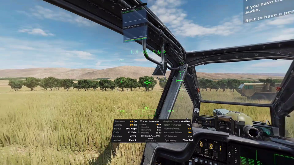 Lots of wrong information you can get on "internetz" these days. I have used Pico 4 firstly with my old GTX1070... Then I "upgraded" to my wife's 3060 :D. It was a tad better FPS and now I have a 4080 (with new system) and is significantly improved. I have an "old" wifi 5 (5GHz) router from my internet provider (Free... the brand is called Free, France) and works very well 99.99% times but sometimes I guess the 5GHz channel gets some interference and I can immediately sense it and if I look into VD performance stats I can see the networking latency spiking from under 10ms to 80-100ms and then I know I just need to do a quick restart of the router so it switches the channel. I also don't have any other home device on 5GHz ( )... everything is wired (PCs, printers, TV, TV Box) or on 2.4GHz (Phones, tablets). The most important thing I think is to know that if the netwoking is not keeping up the performance will be bad and it will give you the impression is the PC not being able to keep the FPS high enough or "strem fast enough" when in fact the bottleneck in the wireless connection between router and headset can mess up everything. To give you an example I can record with StreamLabs program on PC the image that the headset (pico4) is streaming BACK! to the PC after it has received it from the same PC in the first place. Meaning the game renders the image that is transferred wired to the router then wirelessly to the headset and then after displaying the image the headset streams back wirelessly the image from one eye (or both) at 1080p like a video server on the network and the PC picks it up on a webpage which is captured by the Streamlabs and recorded on the hard drive... live... while playing. Obviously it's not an optimal solution but the performance is not that bad as one might expect all things considered.