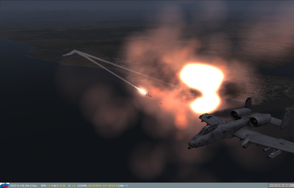 Doing a little sam engagement zone testing and such and after recording my data i chose to watch the carnage. The damage in all its glory.... Incredible blurring and explosion effects. I was watching when the missiles launched, when they left the rack it was so loud and caught me off guard that I actually jumped. Like the kinda jump the lil lady does at scary movies...