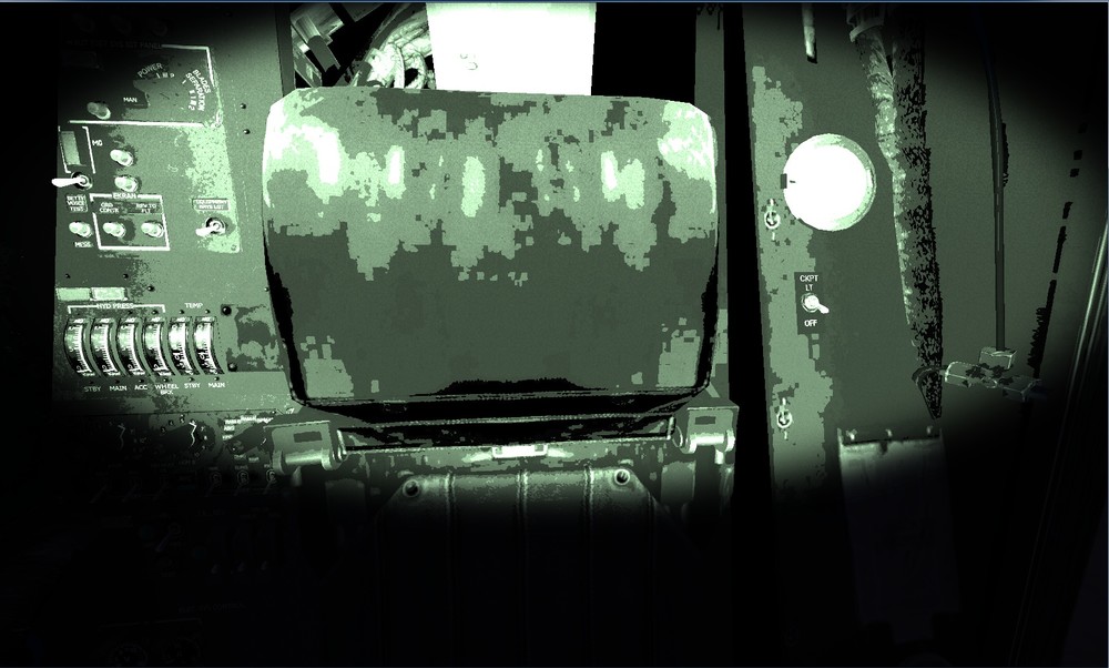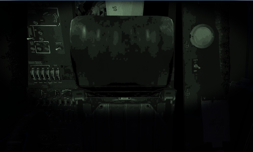Hi, after having reinstalled DCS:BS2 with the 1.1.1.1 upgrade version, i am having problems with my NVG, as you might be able to see in the pics. Pic1 is me look about 180 degrees back at the chair, where i noticed weird detail, with the HMS brightness knob too maximum Pic2 is the same, except the brighness knob should be around 10% Pic3 is me on Sochi adler looking somewhere southeast i believe, with the knob all the way to the left. I am playing with a custom resolution 1670x1004 and the correctly calculated aspect ratio, Textures set to High, MSAA at 4x, and visib. range to medium, the rest is all low. I was wondering if the brightness and the apparent low detail of the chair thing was normal.....