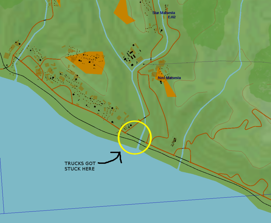 I put together a small mission that involved a KA-50 escorting six vehicles from Sochi to Adler. This was mainly for flight practice so the six vehicle group and the KA-50 were the only user added objects in the mission. When the vehicles came to cross the first of the two bridges south of Nov Matsesta, they simply bunched up and stopped, or bugged out is perhaps a better way to put it. I've included some images to show what happened. Note: This didn't affect the automatically generated civilian traffic that simply passed through the AI vehicles and proceeded over without any collision detection evident. Have a great day! A