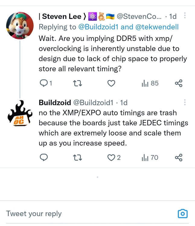 This. If you're buying B. die and running XMP, you're doing it wrong. He's paying 40% more money for 3-5% more performance. Yup. 64Gb DDR5 6000 CL32 hynix M die (can get it down to CL28) is $319 on the egg. -