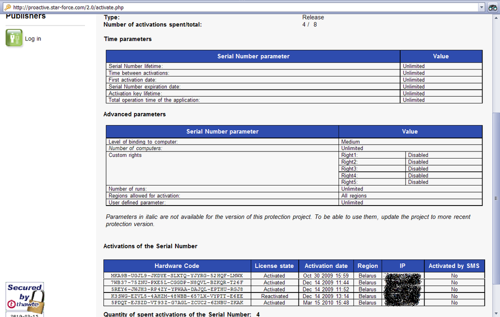 Значит, когда описанное произошло - у данного серийника или изначально была одна активация, или оставалась уже одна (остальные были успешно профуканы). У нас другой случай. А профукать можно вообще всё что угодно. Если уж задаться вопросом :)