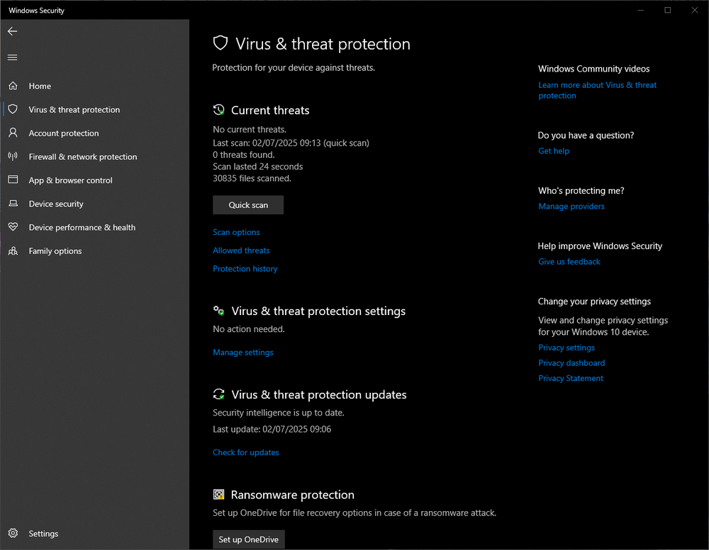 I did look before I posted, but could not see anything about exclusions. I include screengrabs from the various pages etc in my settings/ security etc
