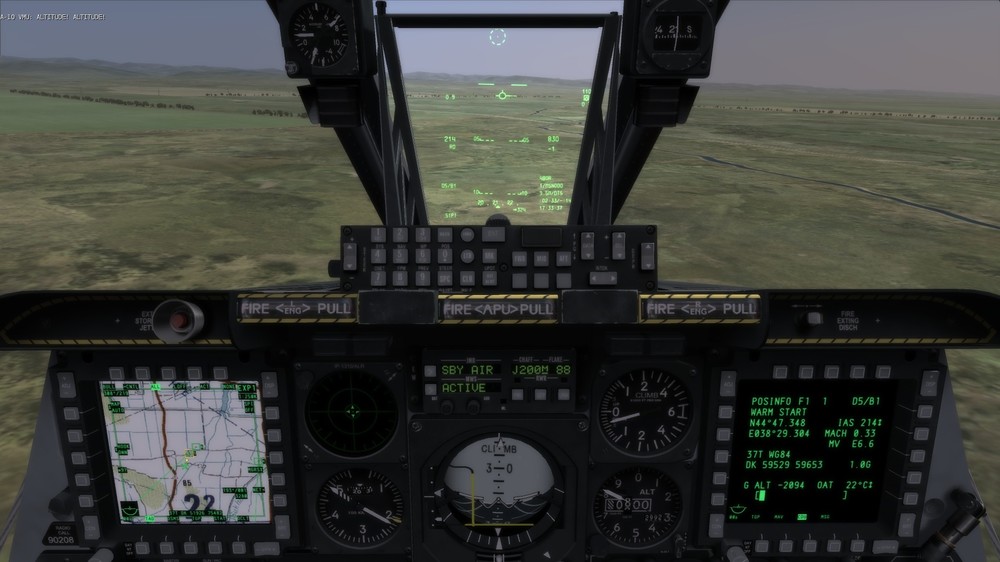 The issue is still present in DCS World: A-10C 1.2.3.9871 In-flight navigation systems realignment after loss of power results in corrupted position calculated by CDU. Affects navigation data on the HUD. On screenshot: Real data: TAD WP1: DK 519 754, barometric altitude: 830 ft Corrupted data: CDU POS page: DK 595 596, altitude: -2094 ft (negative altitude) -