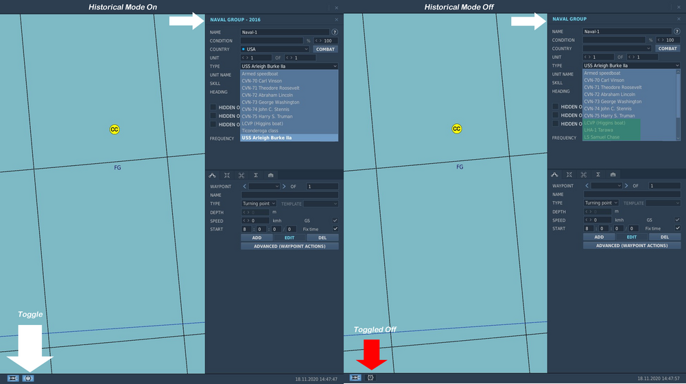 Then when you are building missions don't use historical mode. Having the option to lock assets down makes it easier to build historical missions