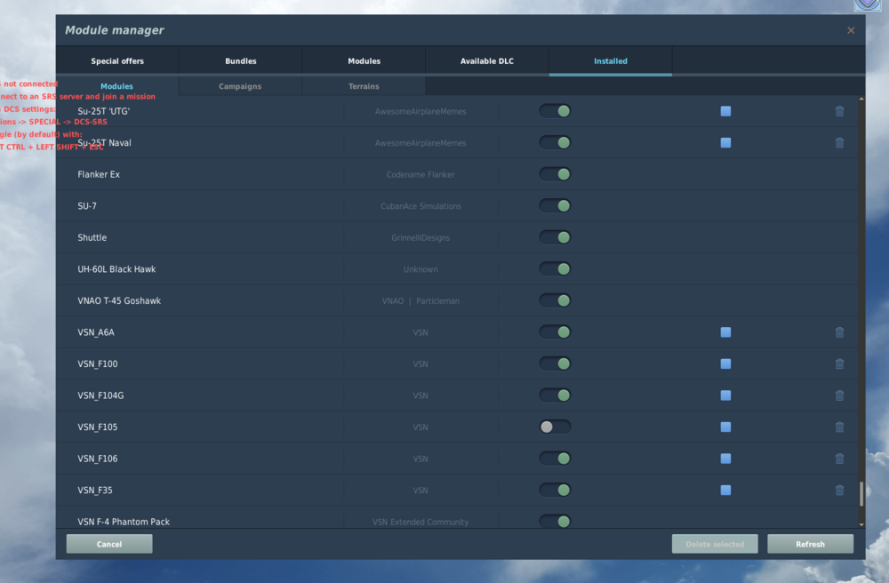 I have told you before the built in DCS module manager already lists mods as well as maps and modules you have installed and DCS missions already list the assets required. I have also stated that when DCS sees a mission that requires an asset that you don't have enabled, you get a message telling you that. How do you think an on/off switch would work? DCS' missing assets already encourage and popularize the use of mods online, so all that a good filter, such as the one I proposed, would do is enable people who don't have any mods or official asset packs to avoid the servers that use them. As a mod on/off switch won't test for official asset pack, even if any server with a mod is hidden, you would still run the risk of trying to connect to a server that uses an asset pack you don't have. However, if we get down to it, your problem, Mr. Humphies, is that the ability to filter out both mods and asset packs you don't have would give you one less thing to complain about it would make avoiding mods a lot easier. I get it, Mike, listening to yourself complain is your greatest joy in life.