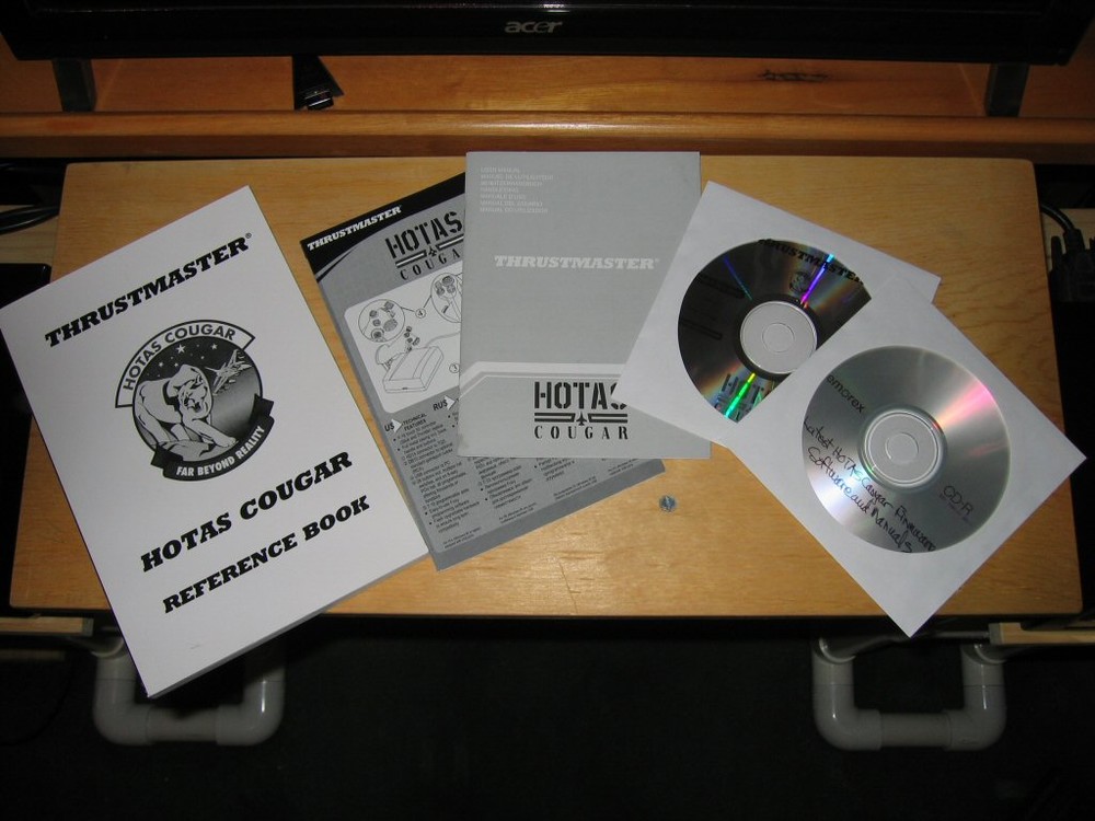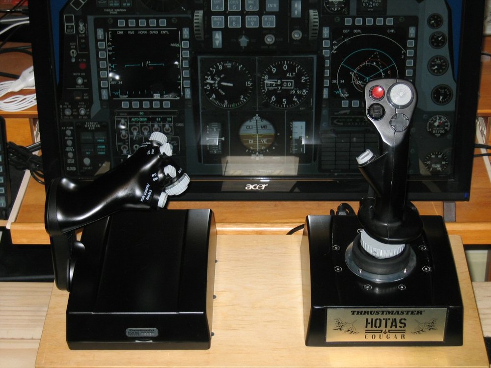 SOLD on 2-2-2014 I have an excellent ThrustMaster HOTAS Cougar for sale to someone in the continental USA. I have thoroughly tested and tuned it and was using it this morning when I took the photos below. I've adjusted the idle and afterburner detentes as well as the throttle rotation friction for nice, smooth performance. It has great pots, tight gimbals, good buttons/switches and now functions better than when it originally came out of the box. Cosmetically I would rate it ~8-9 on a 10 point scale. Functionally it is a 10 and works much better than most stock HOTAS Cougars. I will include with it a CD with all the latest ThrustMaster HOTAS Cougar firmware, software and manuals for both Windows 32 and 64 bit OS's as well as Dr. James "Nutty" Hallows' excellent New Users Guide. I am asking $350 US OBO and the buyer pays the shipping. Please PM me if you are interested. Below are the photos that I took this morning: