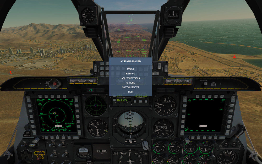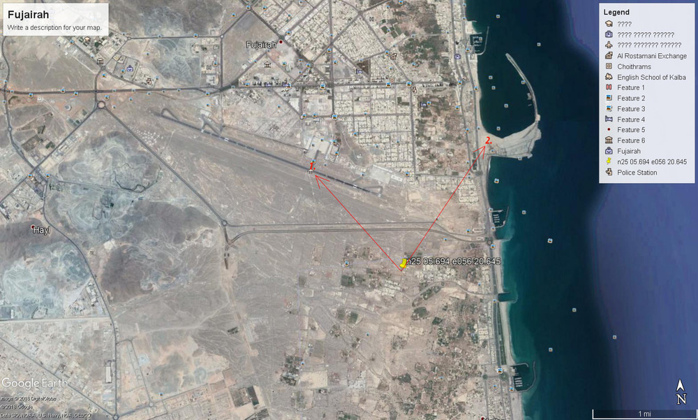 On a whim, I decided to check the accuracy of the DCS World 2.5 Persian Gulf map. I've often wondered just how accurate those real time coordinate updates are in the TAD display. Maybe I'm easily amazed, but holy crap folks... You are pretty much exactly where the coordinates say you are. I started the Persian Gulf Free Flight mission in the A-10C and flew a little ways until I was getting close to town (Fujairah) and paused the mission. I took a screen shot from the cockpit view and edited it by marking a couple of easily recognizable spots on the ground, "1." on the left and "2." on the right both in red. Next I created an image of the TAD display with the coordinates highlighted showing my location. I took those TAD coordinates and plugged them into Google Earth, saved the map image and then marked the same two spots, 1 and 2, and showed their position relative to the marker pinpointing the aircraft position I had plugged in from the TAD coordinates. Damn... I figured the coordinates were probably close enough to keep track of where you were in the sim, but I had no idea they were THIS accurate when compared to the real world. They appear to be spot frikken dead on! I almost wonder if people on the ground in Fujairah looked up and saw an A-10C hovering motionless in the sky while the mission was paused... LOL! Maybe this is common knowledge, but it wasn't for me, at least not this degree of accuracy, so I thought I'd share with the rest of the community. Images mentioned above attached for your viewing pleasure.