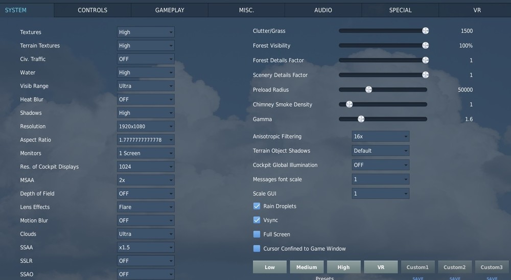 Hi Having an issue where fences around airfields etc and coastlines flicker a lot at a distance and not when zoomed in. Any recommended settings to remove that? I've added my current settings and also system specs. Here is a sample video https://www.youtube.com/watch?v=H7IMGVNVC9o Thanks