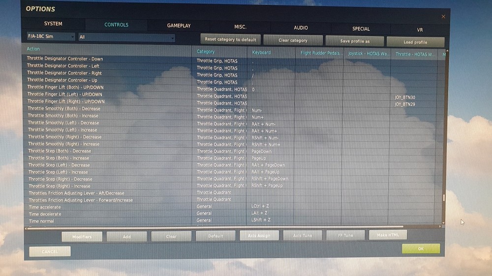 Ok i managed to get the Off/idle thing mapped and the throttles now move in 3D as on my HOTAS so thank you. A few other questions As mentioned before the 3D Joystick buttons on the Hornet Grip don't do anything when pressing the corresponding button on my Thrustmaster Hornet Grip. Any idea why? Also when putting my Throttles full forward i get 99% and sometimes 100%. How can i make sure always 100%? And lastly is there an afterburner function of more than 100% and if so how do i make that work? Thanks -