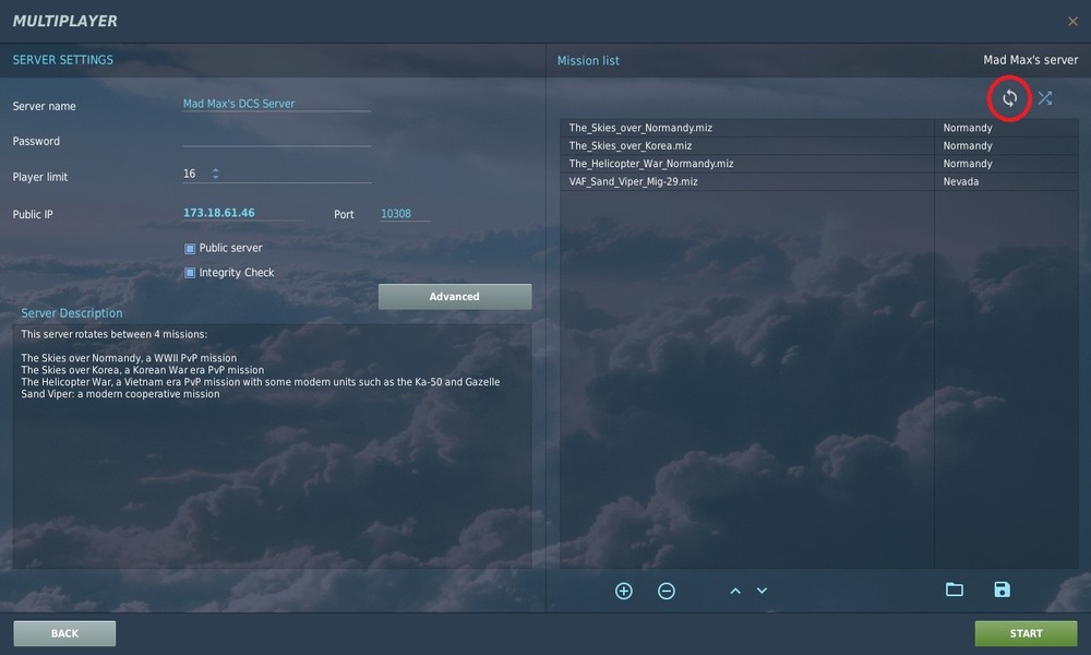 New to MP server hosting. I want to run 4 missions in 2.1 and, once the 4th mission is finished, start again at the first mission. I would have thought this can be done by selecting the loop icon (see red circle in attached screenshot), but my server simply stops after the fourth mission is complete. Is this feature not implemented yet, or am I doing something wrong? Thanks!