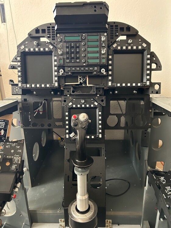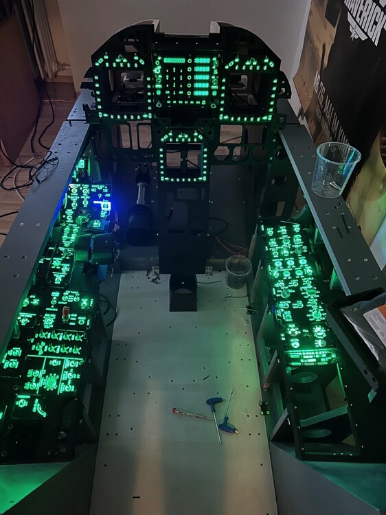 Hi Folks, perhaps some of you know me from 10 years ago when I have build an A-10 cockpit with a real Tornado shell. (Gremlin's A-10 here in the forum) Now my kids are a bit grown up and the indoor pool my cockpit was sitting in is now guess.... a swimmingpool for the kids. But at the end of 2024 I had a bit of free time so my older son (6 years) I decided to return to the hobby of cockpit building. We wanted to go a bit smaler with a F-18 cockpit from The Open Hornet Project, a faboulus project from some real amazing enthusiasts. The cockpit fits in a normal room and in combination with the great VR options and the passthrough abbility of the quest 3 it is getting quite immersive. Actually the wooden frame is finished, all panels with included backlighting are lasered. Everything is hammered together so I think now its time to bring you some pictures. So stay tuned!! Happy to be back again, Gremlin