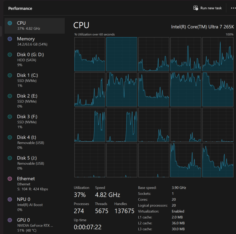Sorry haven't messed with all this until today again. I will check for Intel-VT. Not sure if my Intel Ultra Core 7 has this or not. Everything seems different with the Z890 chipsets. But for the most part, DCS is pegging CPU 1 at 100%, other cores are fine. My only real solution at the moment is process lasso which fixes the problem by locking out DCS from CPU 1. Performance seems ok when doing this, so I can't really complain about this workaround. -