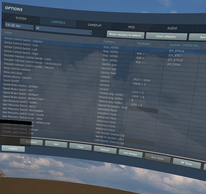 ok I just the mission twice and attached the track files. something I noticed on the first flight that the HUD did not show AUTO, so I thought I did not select the mode correctly. I saw this a few miles out from the target. I reselected Auto several times. When I find my target I use TDC right to point track even if the targets don't move. I saw in Wags video he states to use TDC depress and that is when the auto solution is shown. Also, notice after my flights watching his video again that his HUD shows CCIP before he uses TDC depress. When I press TDC depress nothing happens. As you can see in the screenshot I have the depress modeled on the F18 grip and when clicking it in the controls screen it goes to the right line. As I thought I screwed up the mode selection on the first flight I did it again and with the same results. I have successfully used laser-guided bombs before. AG laser guided first try.trk AG laser guided second try.trk
